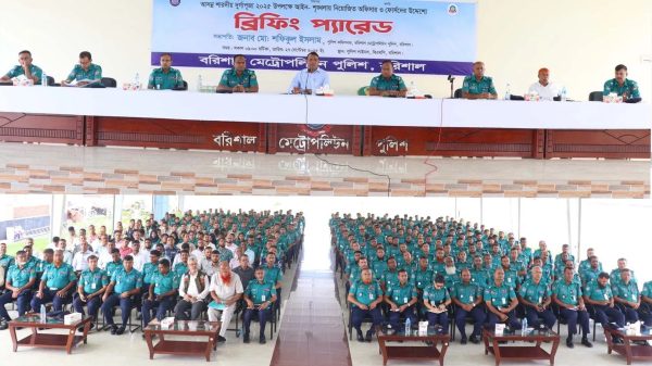 বরিশালে আসন্ন শারদীয় দুর্গাপূজা উপলক্ষে আইন-শৃঙ্খলা ডিউটিতে নিযুক্ত পুলিশ সদস্যদের ব্রিফিং প্যারেড অনুষ্ঠিত। বিষয়টি নিশ্চিত করেছেন (বিএমপি) মিডিয়া সেল। আজ (২৭ সেপ্টেম্বর) সকাল ৯ টার সময় বরিশাল মেট্রোপলিটন পুলিশ লাইন্স