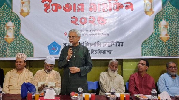 মাহে রমজান উপলক্ষ্যে রাজশাহী বিশ্ববিদ্যালয় (রাবি) শাখা ছাত্রশিবিরের আয়োজনে শিক্ষকদের নিয়ে ইফতার ও দোয়া মাহফিল অনুষ্ঠিত হয়েছে। শনিবার (২২ মার্চ) বিকালে বিশ্ববিদ্যালয়ের কেন্দ্রীয় ক্যাফেটারিয়ায় বিশ্ববিদ্যালয়ের বিভিন্ন বিভাগের শিক্ষকদের নিয়ে এ