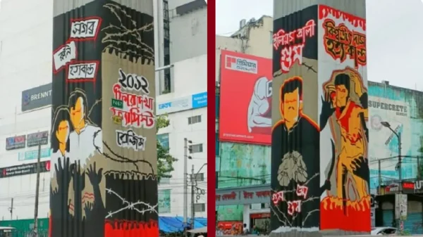 মেট্রোরেলের পিলারে ‘ফিরে দেখা ফ্যাসিস্ট রেজিম’ শীর্ষক গ্রাফিতি অঙ্কন কর্মসূচি চলছে স্থানীয় সরকার, পল্লী উন্নয়ন ও সমবায় এবং যুব ও ক্রীড়া মন্ত্রণালয়ের উপদেষ্টা আসিফ মাহমুদ সজীব ভূঁইয়ার উদ্যোগে। বিষয়টি উপদেষ্টা